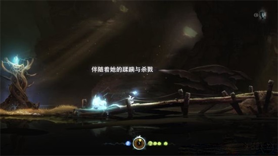 生命值:(屏幕中下方右侧)绿色的光球就是能量值,攻击敌人及摧毁场景道具时可以获得绿色的小光球,这些小光球可以恢复奥日丢失的血量。