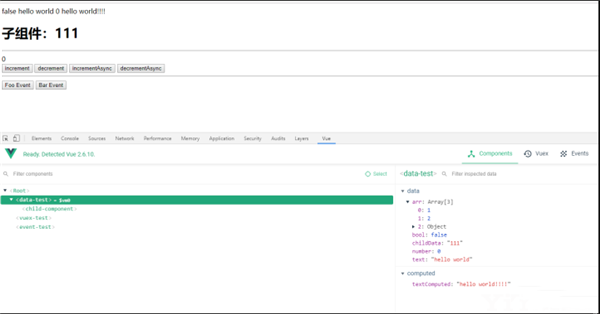 components面板内可以看到我们定义的一系列组件,选中相应的组件后,右侧面板可以看到组件内的data、props、computed、attrs属性。