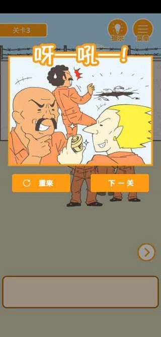 《我要越狱》是一款简单又趣味十足的越狱逃脱类游戏。不知出于何种莫名因素,你遭人冤枉而锒铛入狱。为了洗清自身冤屈,你毅然决定越狱,游戏就此拉开帷幕。该游戏采用剧情式玩法,你得在牢房、食堂等诸多场景里,凭借自己的智慧以及场景中的道具来实施逃生。随着游戏逐步深入,你会碰到越来越多棘手难题。唯有经过谨慎思考并付诸行动,才能够助你顺利逃脱,最终成功洗刷冤情。