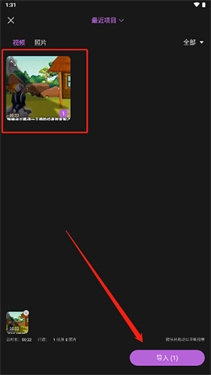 2、选择要剪辑的视频,点击导入。