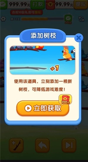 2、游戏一共有三个道具,分别是树枝、撤回、跳关,全部都能简单使用的。