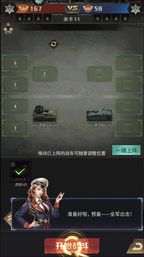 10、在战场准备阶段,选好你的战车后,找到并点击“开始战斗”这一功能选项。