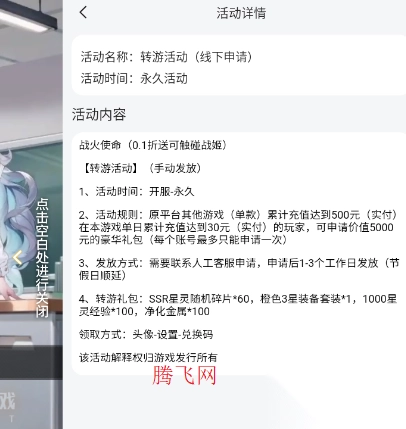 战火使命0.1折送可触碰战姬转游活动(线下申请)