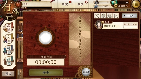 这里便是潜书之处,容我戏称它为赌书吧。一开始仅有两个坑位,通过氪金能增加至四个坑位。点击潜书后,会让你挑选潜书之人,此前讲过,参与赌书的成员不可设为近侍,近侍同样无法参与赌书。