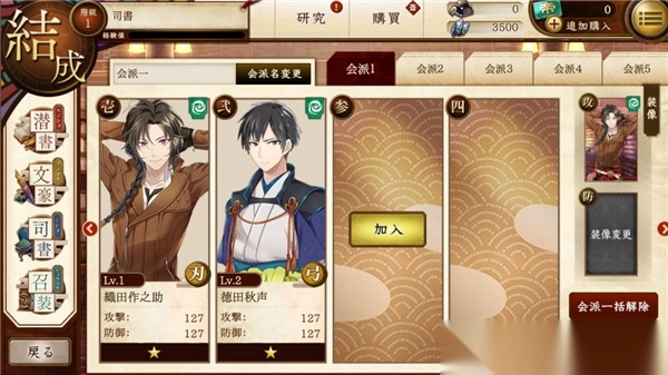 编辑部队的地方,“入替”指的是换人的含义,“外す”表示将其从队伍中移除的意思,其余的基本就是字面意思。关于部队的编程,或许在之后各类涉及战斗的帖子里会展开详细介绍,此处就不赘述了。
