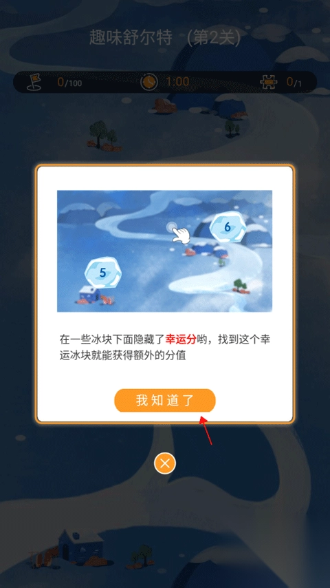 3、页面弹出该训练的基本玩法,即按从小到大的顺序依次点击冰块,用时越短,表明注意力控制能力越强。点击“我知道了”关闭窗口。