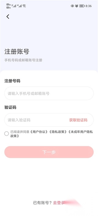 1、在本站下载好软件之后,点击进入来到登录界面选择注册账号。