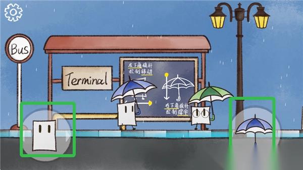 1. 左侧摇杆用于操控主角移动,右侧摇杆则负责控制雨伞。