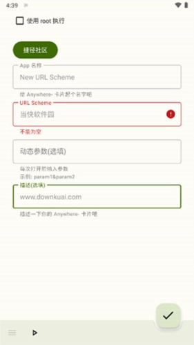 无 Root 模式通过添加 URL Scheme (原理和 iOS 捷径基本相同)实现快速打开页面。