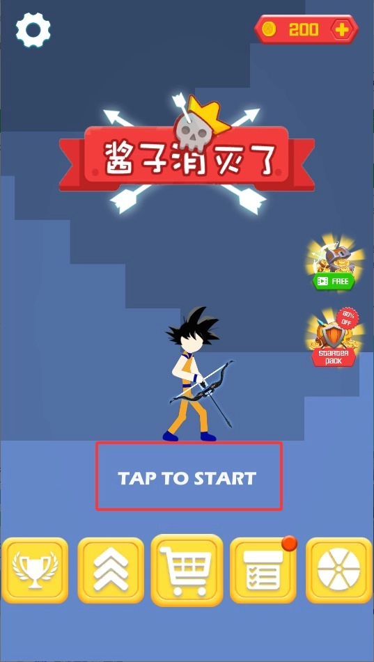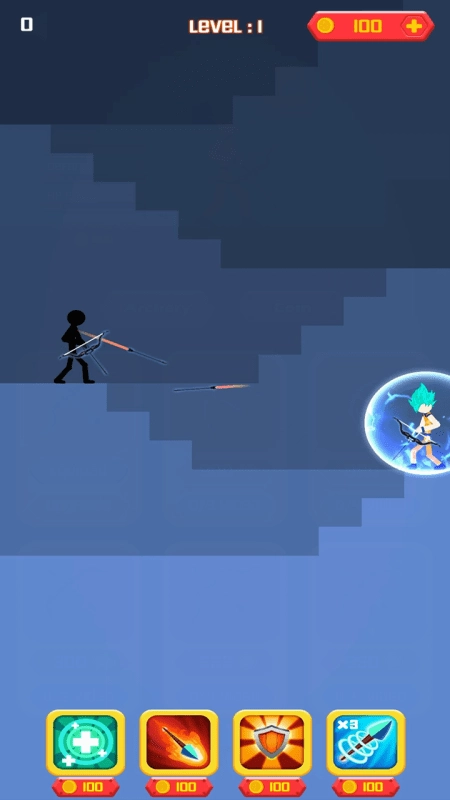 1、游戏启动后点击中央开始键位,角色会自动进入射击准备状态,屏幕上方会显示当前关卡剩余目标数。
