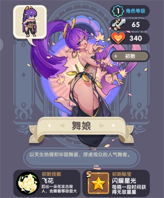 舞娘同样是相当强力的职业,能抛出一朵会随移动不断变大的飞花,持续对敌人造成伤害。而且其初始秘宝可让角色进入无敌状态,这一效果也极为强大。到了后期,怪物数量增多,无敌时间的重要性就愈发凸显。