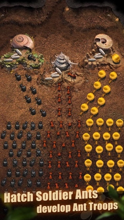 蚁族的兴盛取决于蚂蚁的数量。为了蚂蚁部落能够发展繁荣,尽可能大量地增加蚂蚁数量至关重要。与不断繁衍壮大的蚁族携手,共同抵御外敌,争夺资源,进而扩大自身势力!