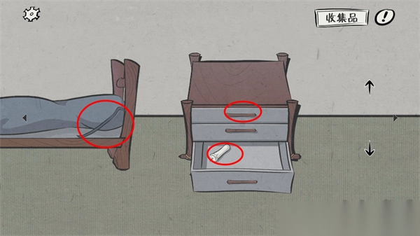初始物资收集步骤:踏入《暗影城 1:释放》游戏后,首先拉开抽屉,取走里面的蜡烛与打火机,接着到左边的床上找到撬棍,如此便完成了开局所需物资的准备工作。