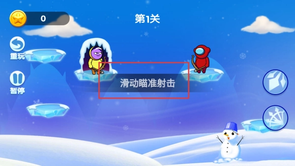 2. 通过滑动屏幕进行瞄准操作,随后射击红色的敌人,以此来完成关卡。