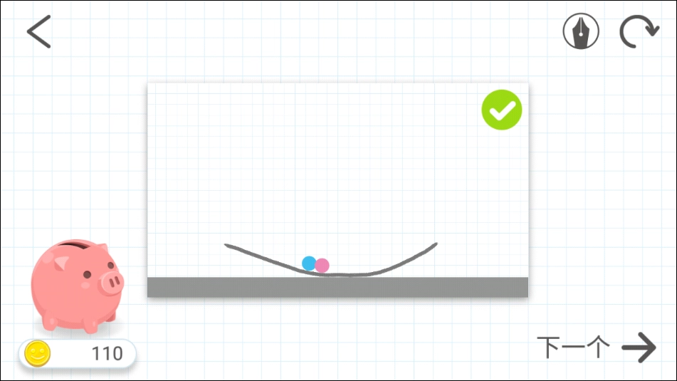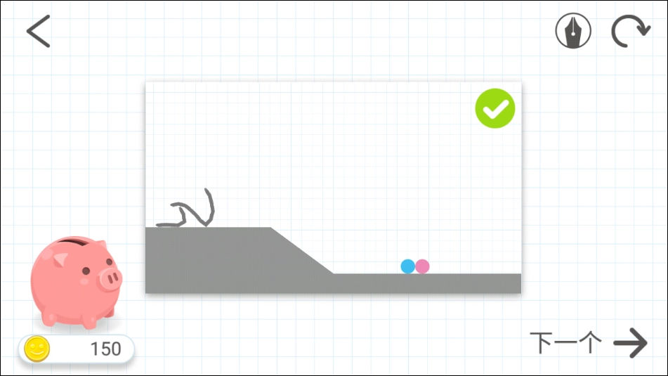 要想过关,只需要使蓝球和红球相撞。自由划线可以让球滚动,你的想象力是过关的关键。