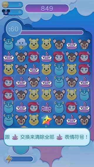 迪士尼表情包大作战是一款迪士尼题材的表情消除类休闲手游,在游戏中,玩家可以进行快速三消游戏,赢取奖励,完成任务,并发现新的表情符号。