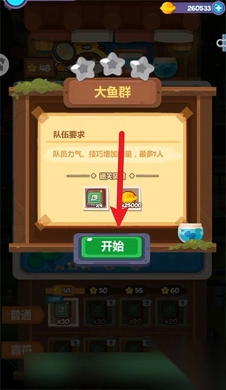 1、首先打开妙奇星球最新版,找到大鱼群点击开始。