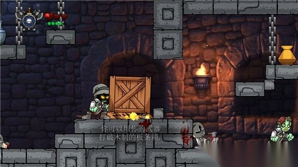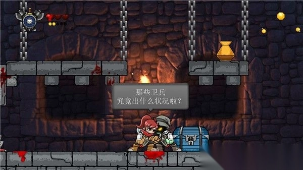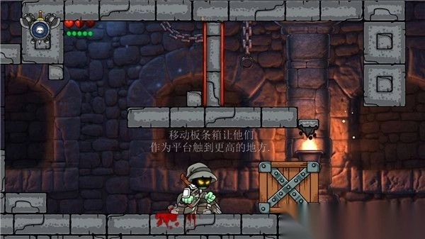 7、跳上高台将箱子推到地面,并往右推即可挡住地面的刀子通往下一关
