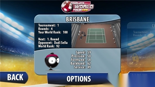 让你有种在全世界打巡回赛的赶脚(好吧,应该是我想太多)。游戏中对于对手方面也是可以选择的,你可以根据自己的实际能力去寻找简单、一般、高手三个难度的对手,当然,如果你连简单的对手都打不过的话,你就只能承认跟方块君一样,是个手残玩家了。此外,游戏中的比赛回合制度也是由你来决定的,有没有万事皆有我掌控的感觉