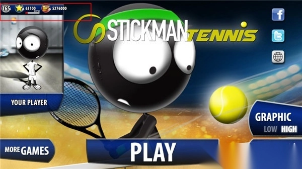 1. 当玩家踏入游戏的起始界面,首先看到的是一个火柴人,它脑袋大大的,通体漆黑,手里握着黑色球拍,脸上挂着一副准备大显身手的得意神情,瞬间就勾起了玩家的兴致。在游戏界面停留片刻后,系统会自动播放一场场火柴人之间的网球对决,这样一来,就算玩家在游戏过程中感到无聊,也能欣赏到如同真实场景般的比赛。