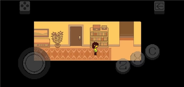 4、一切就绪后就可以正式进入游戏了,玩家根据剧情发展进行按键操控,例如玩家需要控制Kris让其起床出门去学校,可以滑动左边的控件让Kris走到箭头指示的那里,然后就会切换下一个场景了