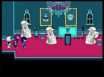 从女王的豪宅入口存档点出发,一路向右,走到这个满是女王雕像的房间