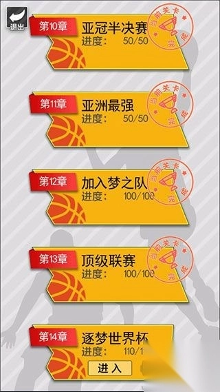 5、点击“去打比赛”后,便进入游戏的关卡界面,其中有十多个关卡等待玩家挑战,成功通关的关卡会显示完成印记。