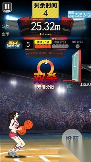 4、若我们连续进球,就会触发combo连击,此时得分将获得更高加成,而且还会依据连击数点亮对应的篮球图标。