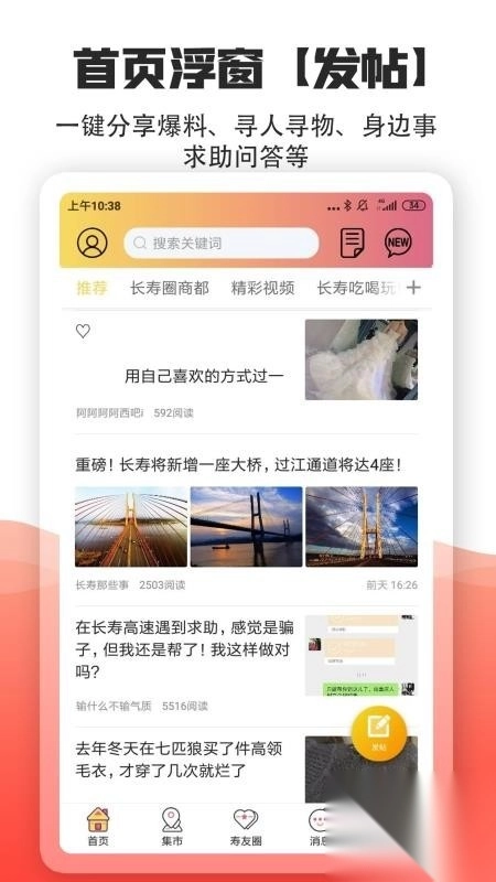 5、点击“长寿圈”,进入圈子后,便能查看到本地朋友分享的消息。