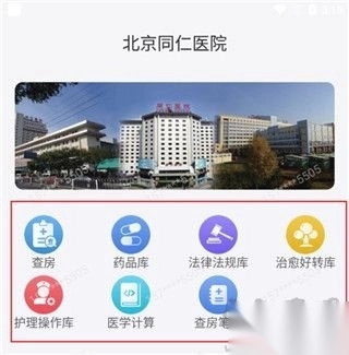4、进入页面后,可以看到查房、药品库、法律法规库等一系列操作
