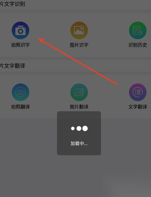 1. 开启app,在主界面点击“拍照识字”功能。
