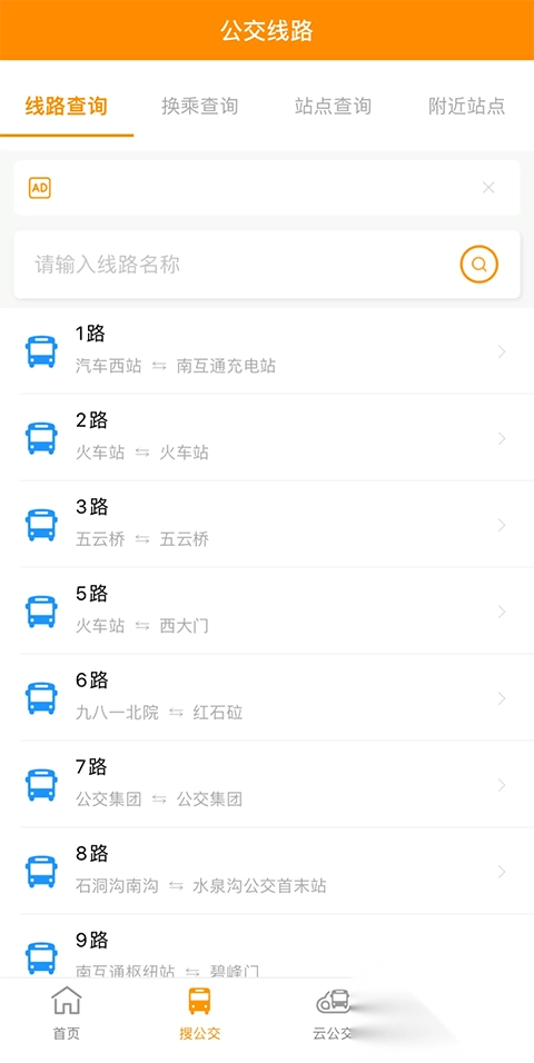 2、在搜索框中,输入线路名称,下方会显示各路公交车的起始站;