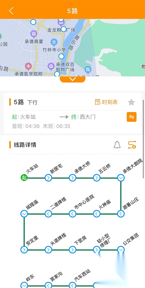 3、点击需要搭乘的公交车,里面有详细的时刻表、路线图、首班末班车时间等信息;