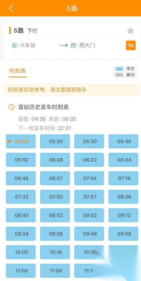 4、点击时刻表,显示详细的本路公交车到站时间。