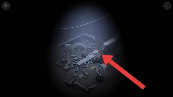 2、所呈现的场景中带有机械与杂物,依据提示指向特定位置,旨在引导玩家关注该区域或进行相关操作。