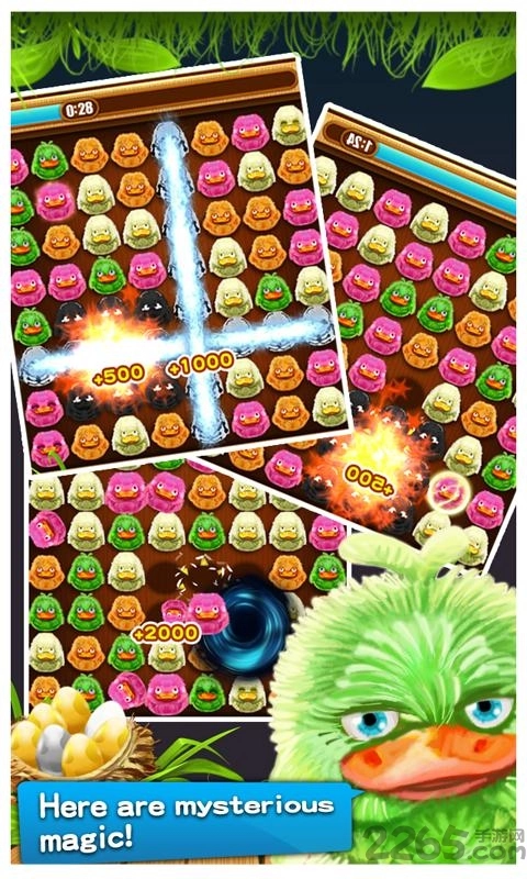 1、轻点“开始游戏”,手指快速连点,消除那些模样搞怪的鸭仔,伴随它们“嘎嘎”叫的特效音,能让你笑得忍不住拍桌子。