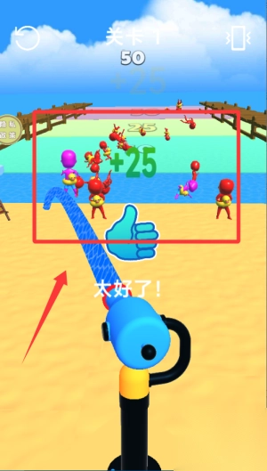 2、注意观察海面上出现的物品,及时用水枪攻击它们,这样能获得有利结果。