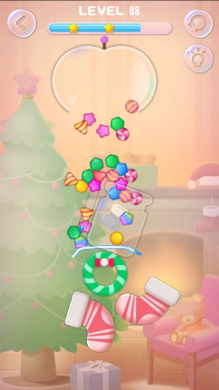 玩家只要用瓶子接住糖果,就能获得三颗星奖励。
