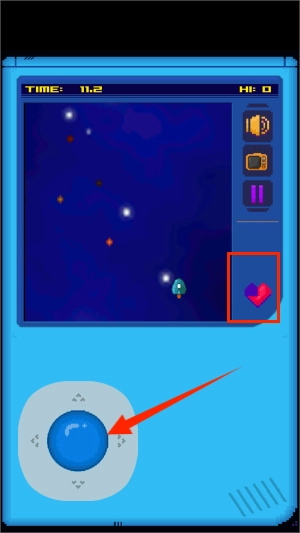 2、利用底部的方向摇杆操控飞船轨迹,灵活闪避陨石群和敌机发射的能量光束。