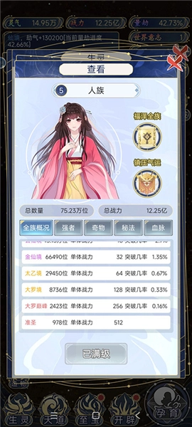 3、种族中“准圣”数量达到500个及以上的,皆可使用“道韵”。