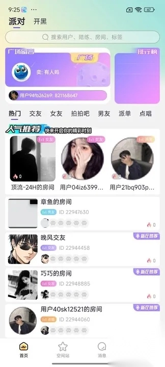 1、在首页,你能够结识优秀的人群,同时还能使用查看排行榜、在广场留言等功能。