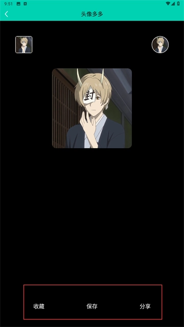 2、头像详情页可选择【收藏】【保存】【分享】操作,留存或传播喜欢的头像。