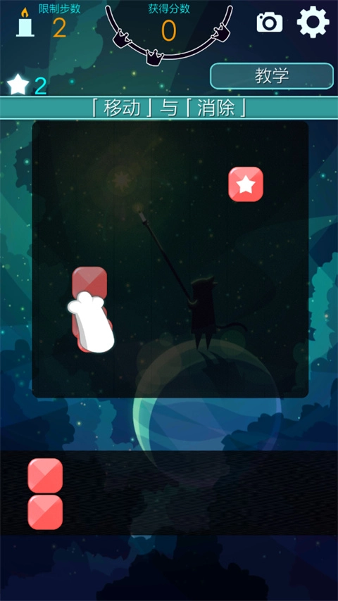 消除游戏虽然简单,不过还是有新手教程可以给大家的,其实很简单,就跟俄罗斯方块差不多,横竖的有3个就可以进行消除了,完成目标就通关。