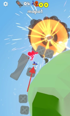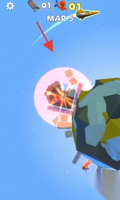2. 使火箭撞击行星表面,引发爆炸效应,凭借冲击力破坏地形与道具,进而影响场景中小人的状态。