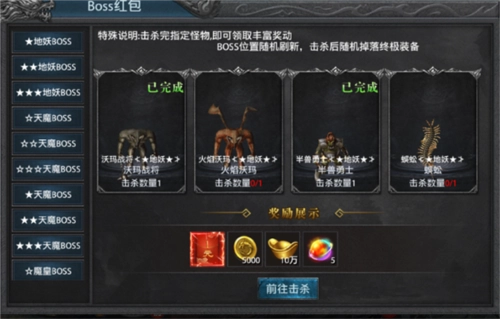 击杀指定怪物,即可获得红包、龙币、元宝、恶魔果实等材料。同时击杀BOSS将掉落极品装备,爆率极高!