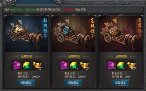2、每天16:00-16:30、19:00-19:30押镖可获得双倍奖励