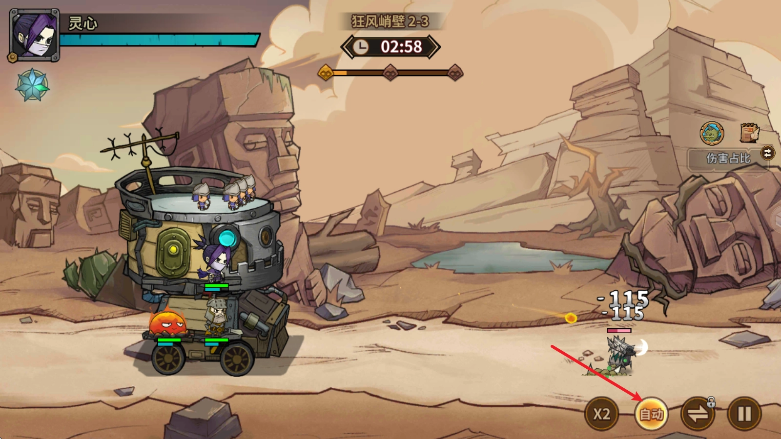 2、战斗开始后,堡垒上的英雄们就会自动攻击,并增长自己的怒气值。