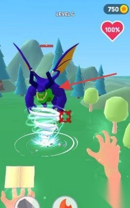 1、在LEVEL6关卡,通过手势释放技能,攻击不同场景的怪物。
