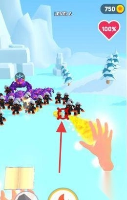 3、推进关卡,切换雪地等场景,积累金币,解锁新技能/强化手势效果,应对更强敌人。