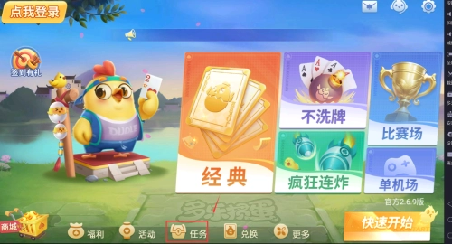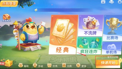 3、主界面选择快速开始选项,系统将自动匹配AI对手进行斗地主对局。
